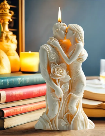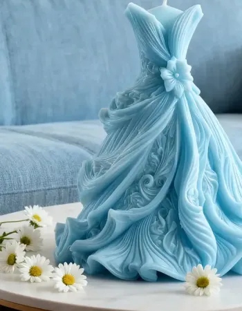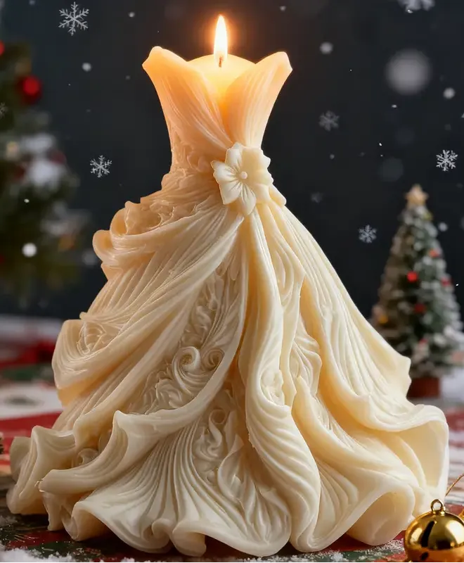 Vela vestido de novia blanco romántico y elegante, diseño creativo, con velas de cera de abeja y pequeños adornos