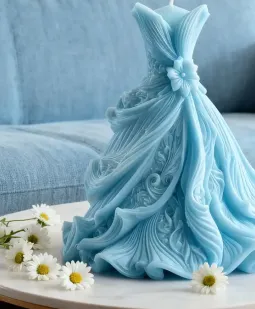 Vela vestido de novia blanco romántico y elegante, diseño creativo, con velas de cera de abeja y pequeños adornos
